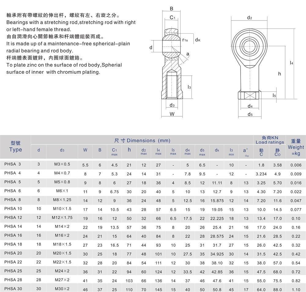 產(chǎn)品名稱:PHSA內(nèi)螺紋自潤滑桿端關(guān)節(jié)軸承